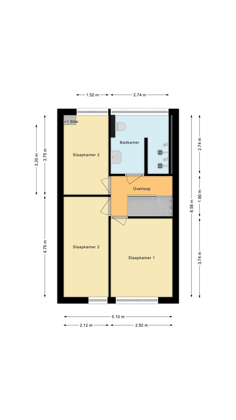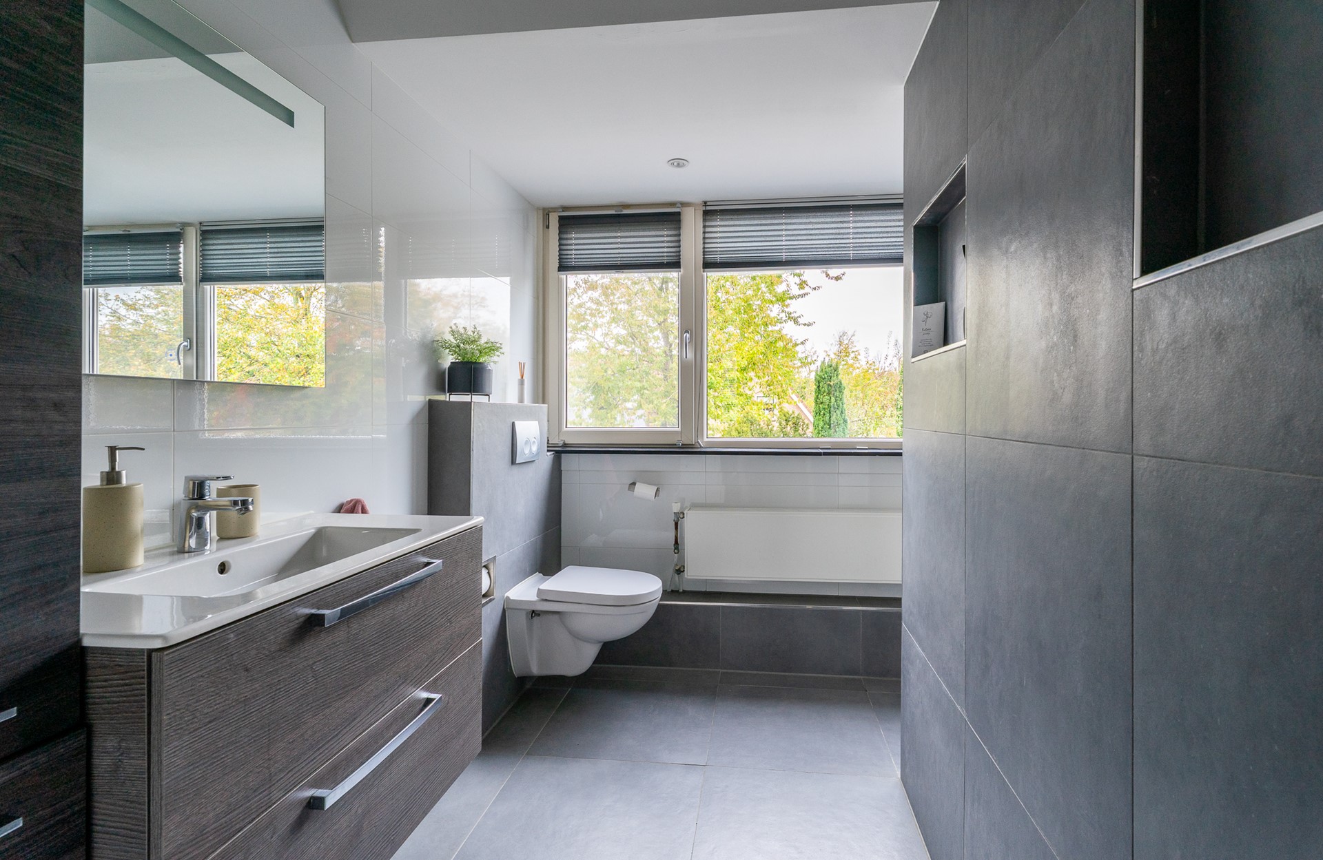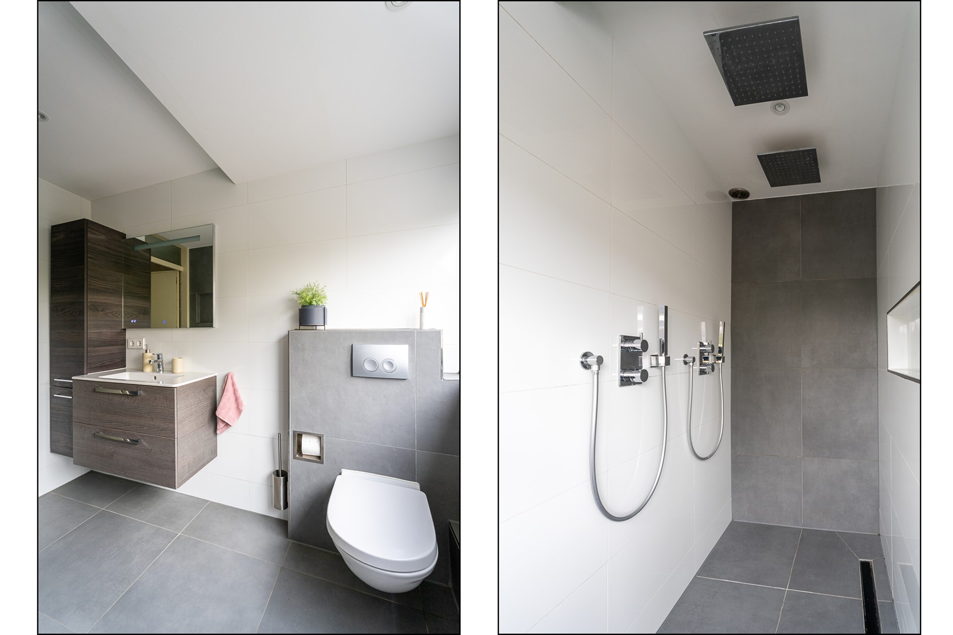 Op de eerste verdieping bevinden zich drie ruime slaapkamers, allemaal met een verzorgde afwerking en veel lichtinval. De moderne badkamer is luxe uitgevoerd met een dubbele inloopdouche, stijlvol wastafelmeubel en tweede toilet – een plek waar elke dag begint in comfort.