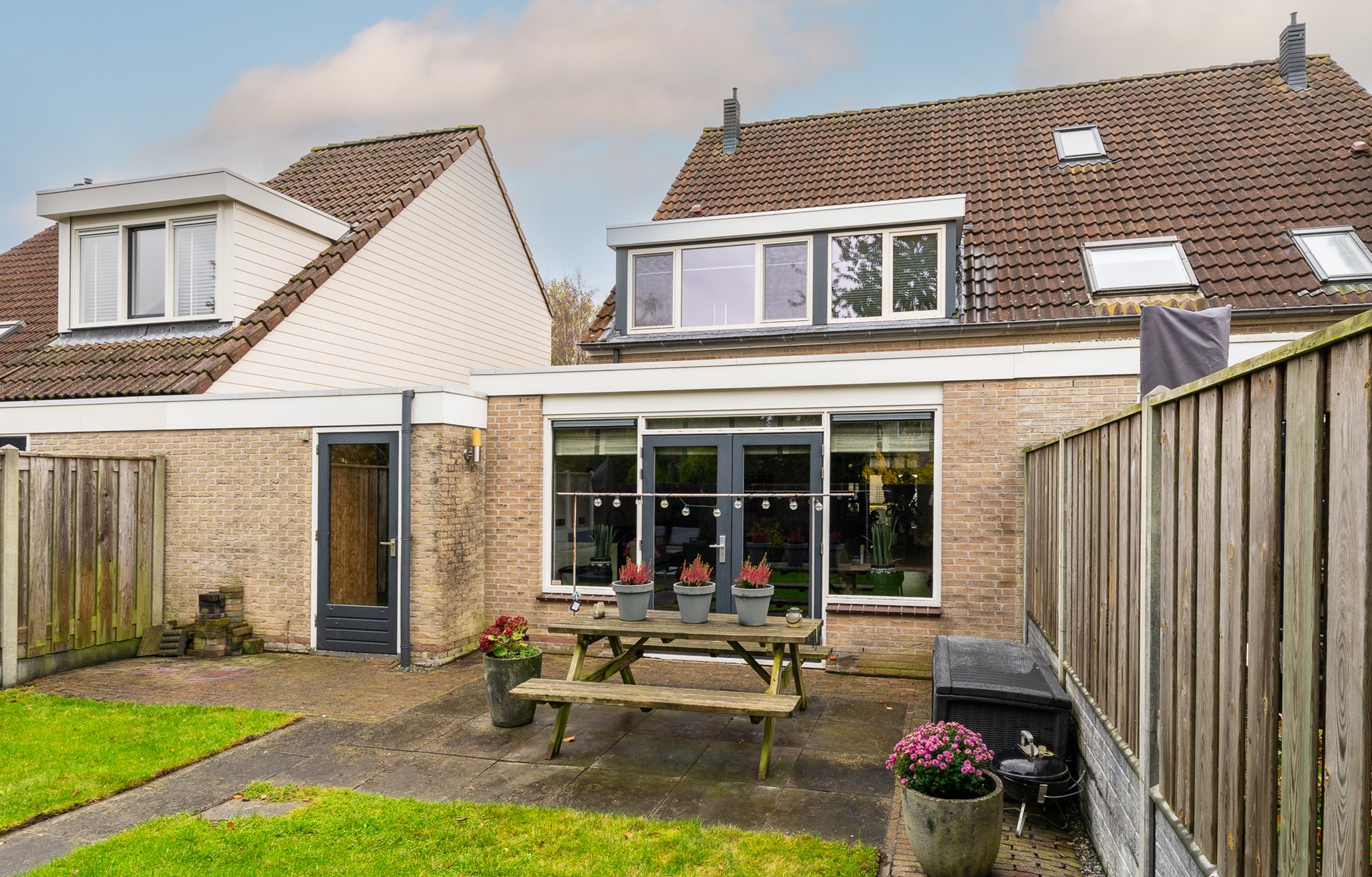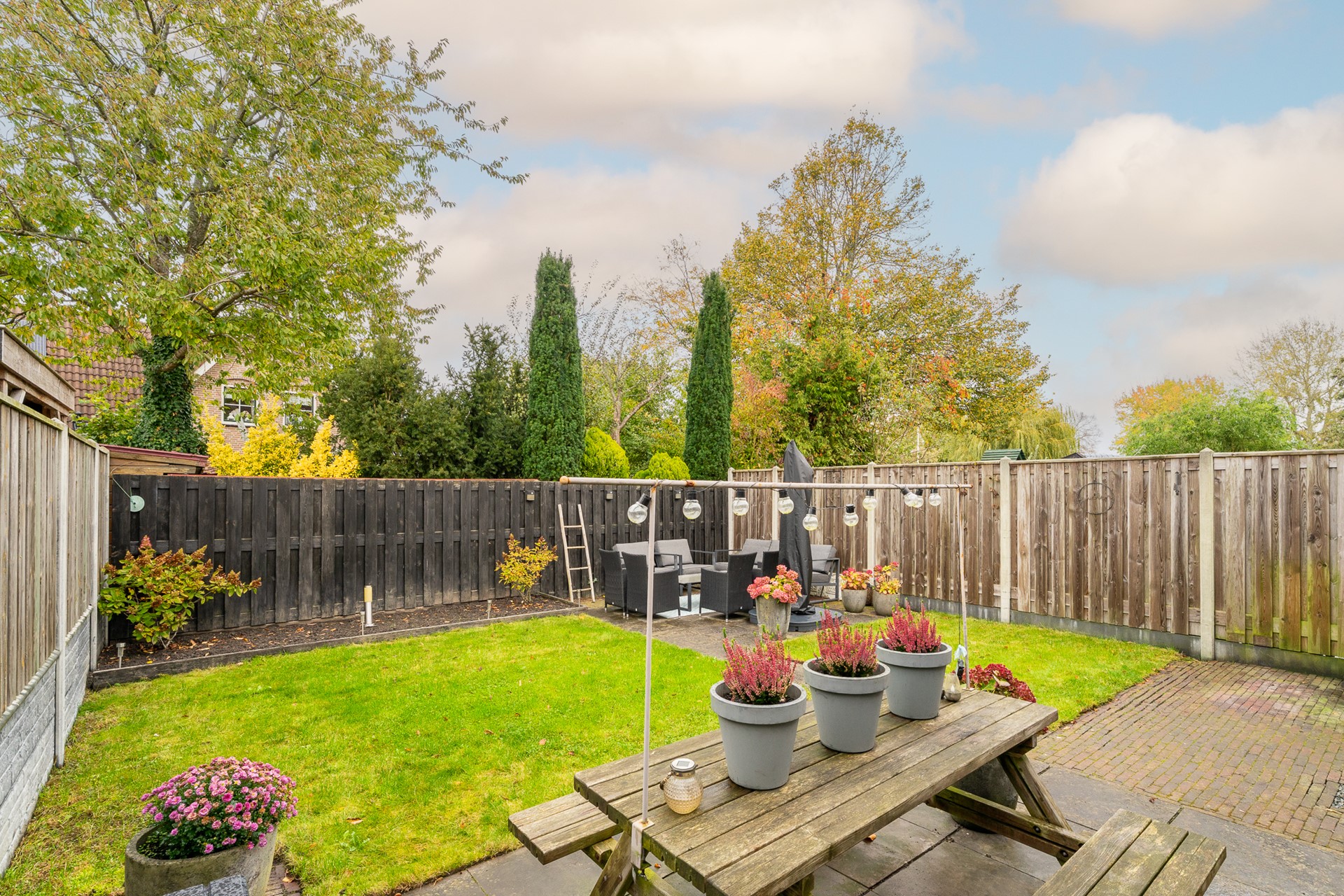 De tuin is verzorgd aangelegd en biedt een fijne combinatie van groen, privacy en zon. Hier geniet je van lange zomeravonden, een barbecue met vrienden of gewoon een rustig moment in het zonnetje.