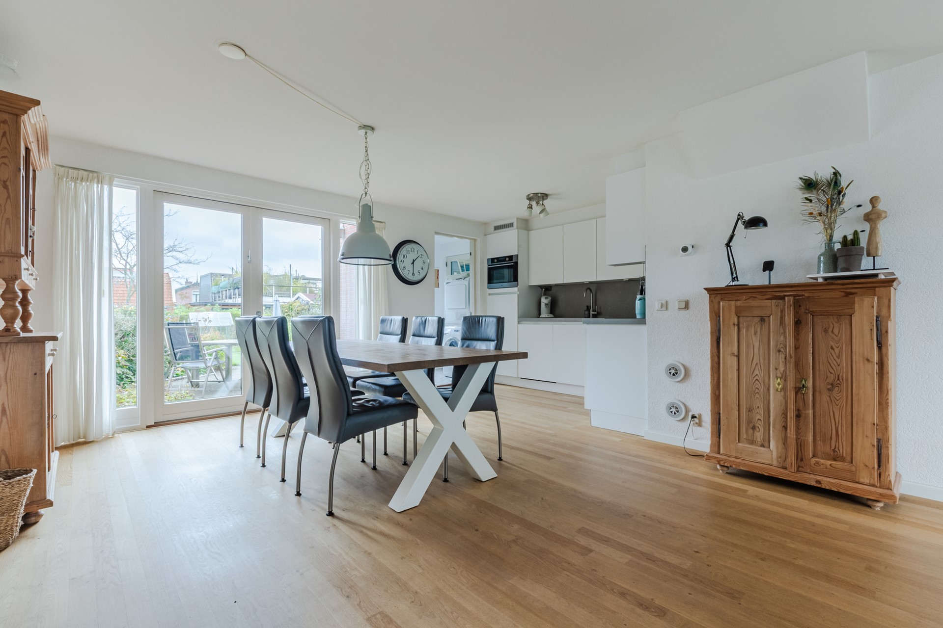Via de entree met hal, toilet en trapopgang kom je binnen in de lichte, ruime woonkamer. De erker aan de voorzijde zorgt voor een prettige lichtinval en een fijn uitzicht op het plantsoen aan de voorzijde. De woonkamer is sfeervol afgewerkt met een houten vloer en biedt volop ruimte voor een gezellige zithoek en eethoek.