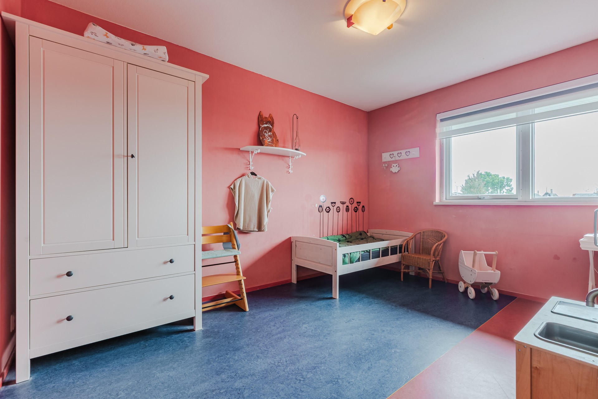De eerste verdieping telt drie slaapkamers, allemaal met rechte wanden, wat zorgt voor optimaal gebruik van de ruimte. De grote slaapkamer aan de voorzijde beschikt over een vaste kast en dubbele deuren naar het balkon, die de kamer extra sfeer geven. De badkamer is voorzien van een ligbad, douchehoek, tweede toilet en wastafelmeubel.
