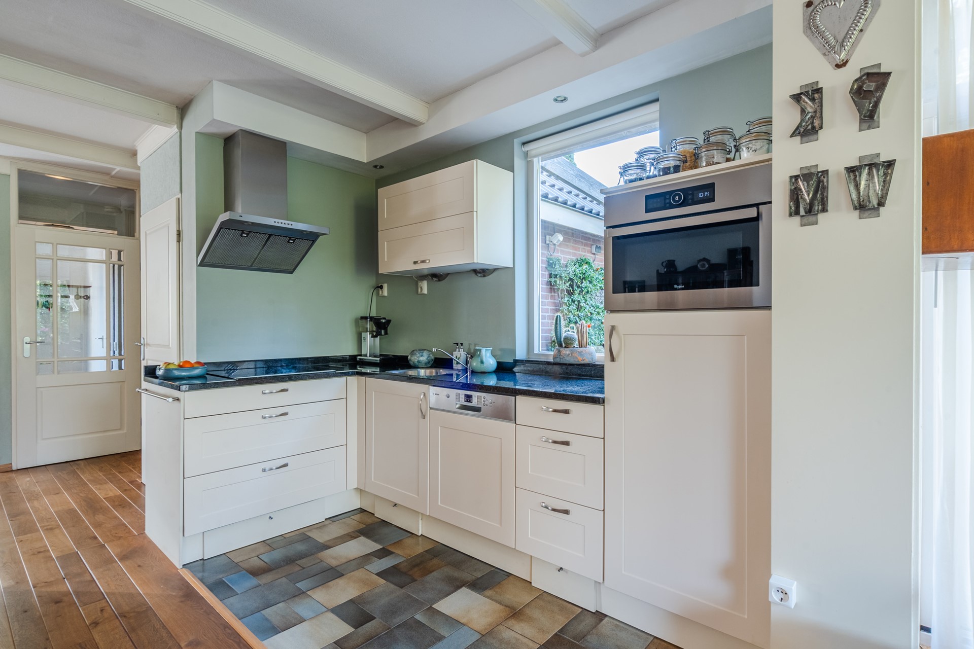 Via de verzorgde voortuin kom je binnen in de hal met toiletruimte, trapopgang en toegang tot de garage. De ruime woonkamer bevindt zich aan de voorzijde van de woning en is heerlijk licht dankzij de grote ramen in de voor-, zij- en achtergevel. De houtkachel (ter overname) zorgt voor een warme en gezellige sfeer in de wintermaanden. De open keuken is uitgevoerd in een lichte kleurstelling en voorzien van onder andere een koelkast, combi-oven, inductiekookplaat, afzuigkap en vaatwasser. Hier kook je met plezier, terwijl je in contact blijft met de rest van het gezin of je gasten in de woonkamer. In het uitgebouwde eetgedeelte van de woonkamer is ruimte genoeg voor een grote eettafel. Via de schuifpui kom je in de fraai aangelegde achtertuin.