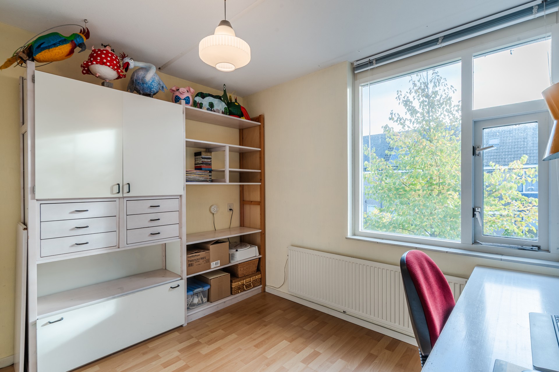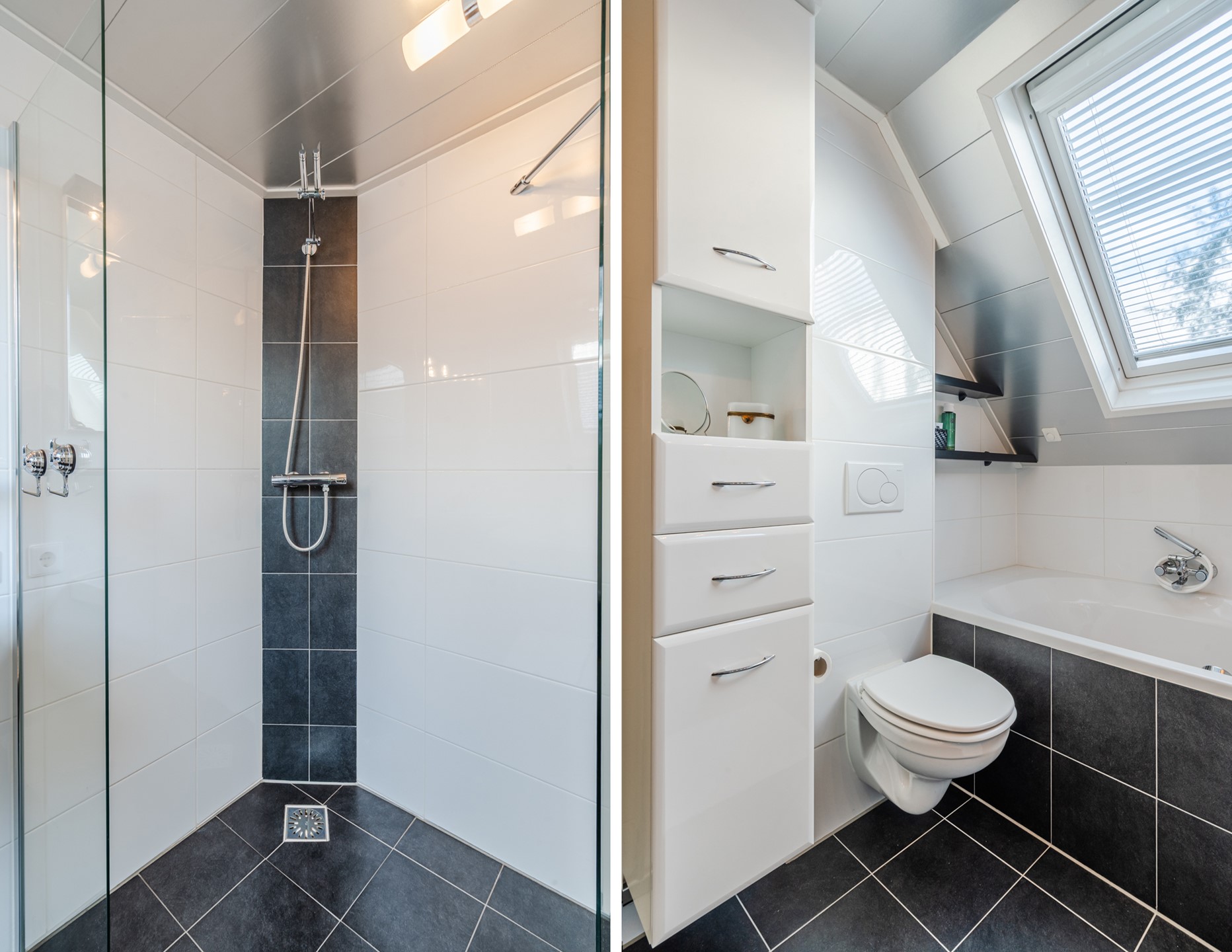 Via een vaste trap bereik je de tweede verdieping. Dankzij de dakkapel is hier een volwaardige vierde slaapkamer ontstaan. Perfect als master bedroom, werkkamer of speelruimte. Ook hier is voldoende bergruimte aanwezig achter de knieschotten. Op de voorzolder vind je nog meer opbergruimte en de opstelplaats voor de wasmachine en droger.