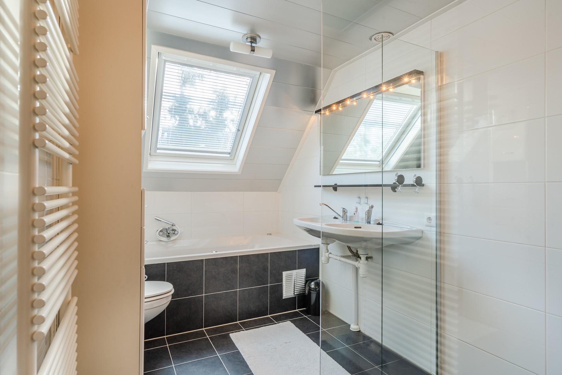 Op de eerste verdieping bevinden zich drie ruime slaapkamers; allemaal netjes afgewerkt en voorzien van grote ramen die voor veel licht zorgen. De vergrote badkamer is voorzien van een ligbad (whirlpool), inloopdouche, dubbele wastafel en een tweede toilet.