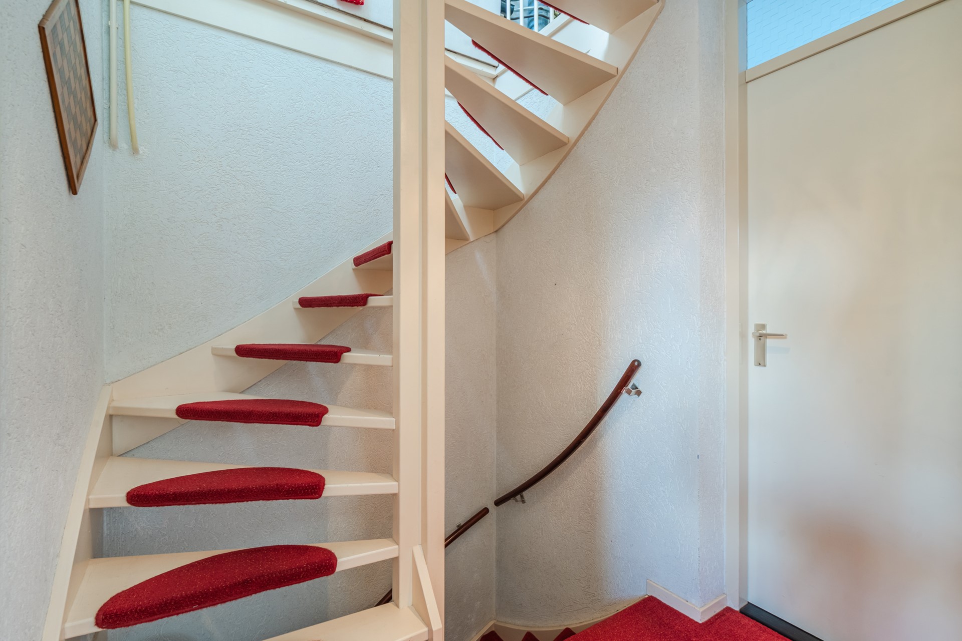 De aangebouwde garage is bereikbaar vanuit de hal en beschikt over een elektrische garagedeur en een zolderverdieping op stahoogte met veel bergruimte. Ideaal voor fietsen en opslag of voor hobby’s en klussen.
