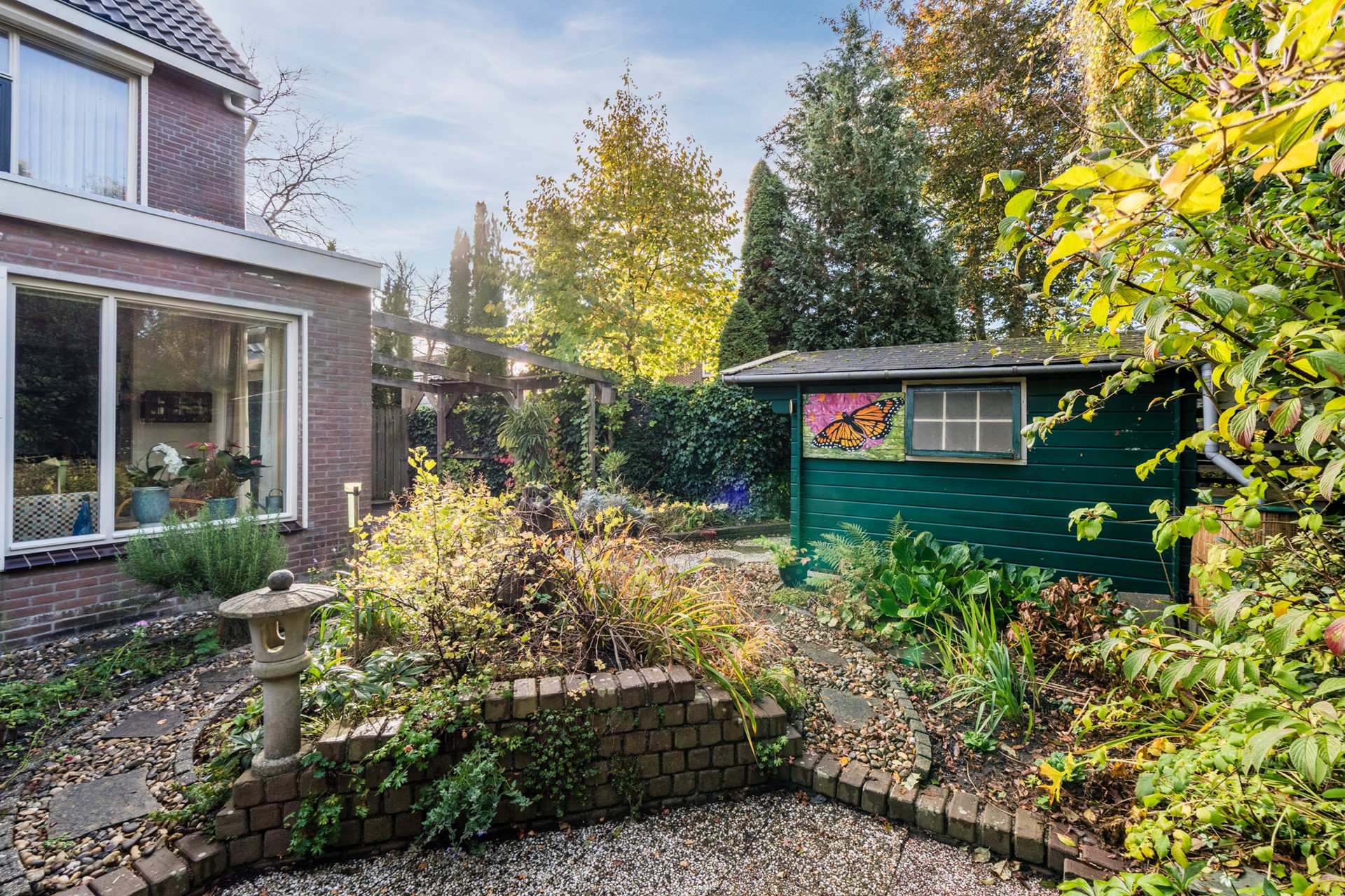 De achtertuin is gelegen op het westen en daarmee ideaal voor zonliefhebbers! Hier geniet je van de middag- en avondzon op het royale zonneterras, omringd door veel groen. De tuin biedt volop privacy en is bereikbaar via een poort naast de woning. Aan de voorzijde is parkeergelegenheid op eigen erf.